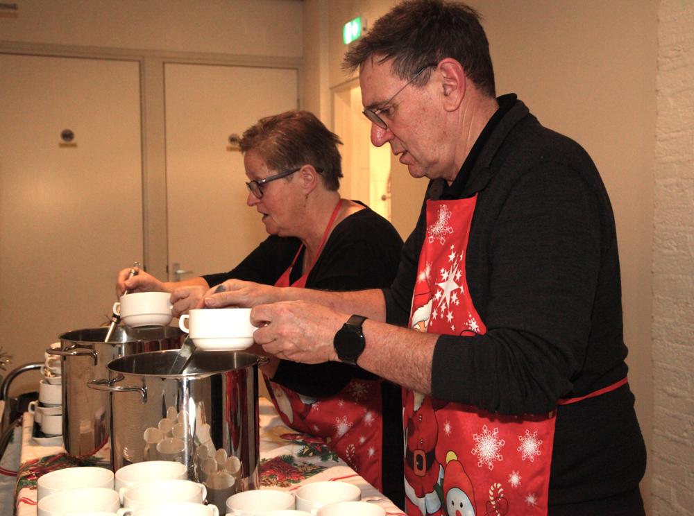 De middagen werden muzikaal ondersteund door Bennie’s Muziekdeuze uit Goor. Bennie Haafkes uit Goor zorgde voor samenzang, gezellige kerstmuziek en Gouwe Ouwe; dit alles met een voor deze gelegenheid passend volume. De gasten lieten zich het driegangendiner goed smaken: de meeste bordjes konden uiteindelijk weer leeg worden opgehaald! Achter de schermen waren vrijwilligers druk aan het werk om alles in goede banen te leiden.