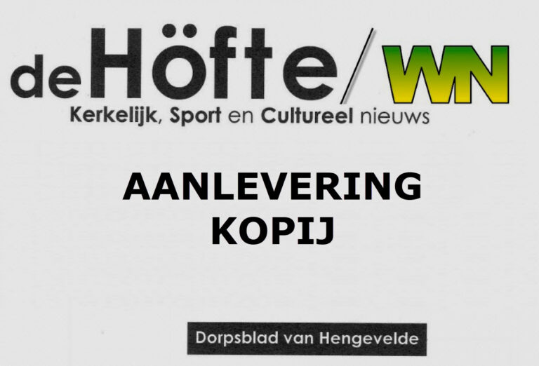 Het inleveren van kopij verandert niet. Het bestaande e-mailadres [email protected] blijft het adres waar kopij via e-mail kan worden ingeleverd. Dit e-mailadres wordt overgenomen door WegdamNieuws en voortaan door de redactie daarvan beheerd. Op deze manier is de continuïteit van de informatievoorziening verzekerd, een prettige gedachte voor al degenen die Dorpsblad De Höfte als een onmisbare informatiebron beschouwen.