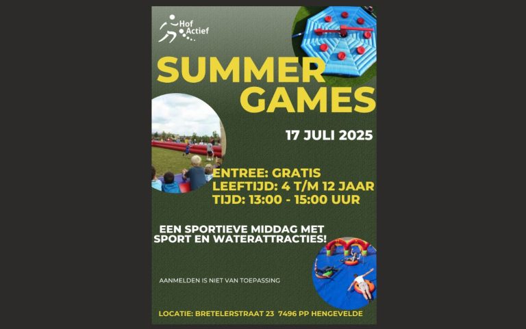De zomervakantie is begonnen en dat betekent: tijd voor actie! Aanstaande donderdag 17 juli organiseert Buurtsportcoach Hof van Twente een sportief en speels evenement voor de jeugd: de Summergames.