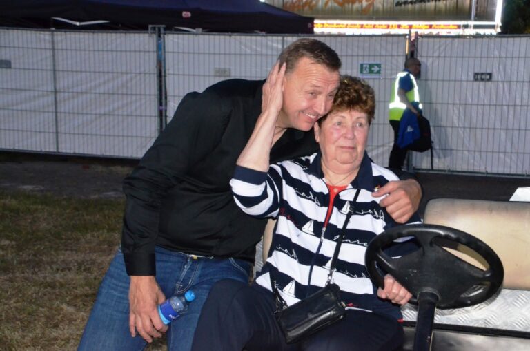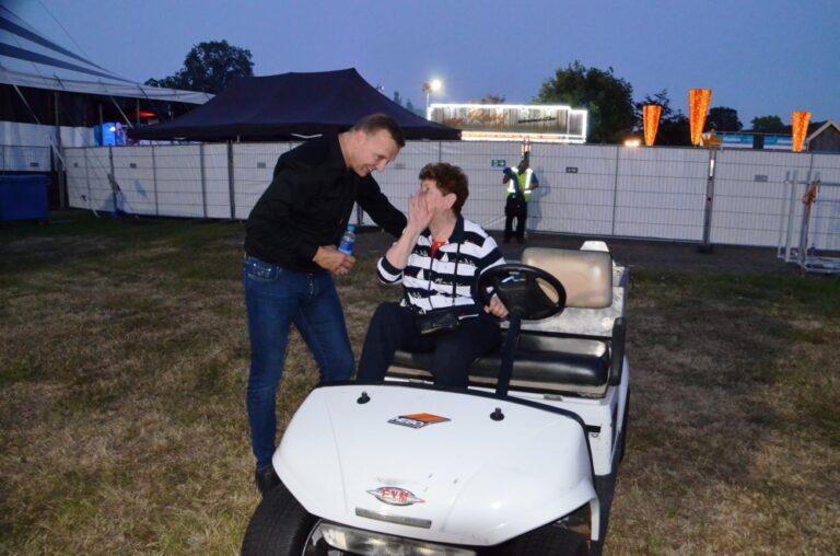 Riky Schonenborg (88), jij gaat naar het optreden van Jannes met een heuse ontmoeting na het optreden! Twee slapeloze nachten later was het zo ver. Met het golfkarretje van HEBO richting de plek richting het optreden, waarbij “onze” Riky vooraan stond met haar jongens en de dames! En daar kwam hij daar aangelopen na het daverende optreden en nam alle tijd voor de krasse Hengeveldse dame! Riky de volgende dag: