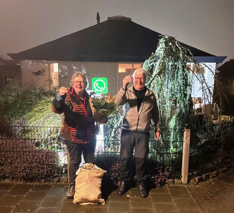 Op donderdag 16 januari vierde Thea haar 68e verjaardag, en die ging allesbehalve ongemerkt voorbij. De oproep om haar te verrassen met een kaartenregen werd massaal opgevolgd, en de respons was overweldigend. Honderden kaarten stroomden binnen, allemaal speciaal voor Thea. De avond voor haar verjaardag werd alvast feestelijk ingeluid: een prachtig bord werd in haar tuin geplaatst, er werd geproost op haar “oudejaarsavond,” en ze kreeg een postzak vol kaarten én een grote teddybeer cadeau.