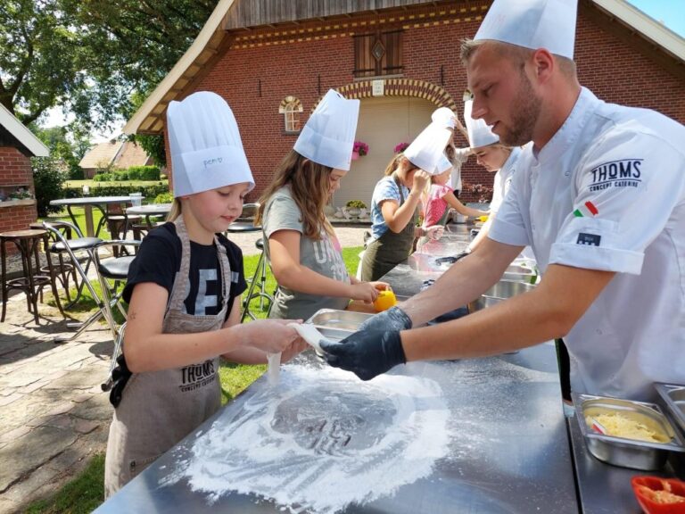 Het was een gezellige middag en de kinderen deden goed hun best. Na een korte uitleg van de chefs gingen de kinderen zelf aan de slag met het snijden van groentes, rollen van deeg en beleggen van de pizza’s. Nadat dit gebeurd was werden de pizza’s in de steenoven afgebakken en was het tijd voor de grote test. Iedereen moest zijn/ haar pizza laten proeven door de mede bakkers en natuurlijk door de jury. Gelukkig is iedereen met vlag en wimpel geslaagd en ging iedereen met het pizza bakkers diploma naar nu!”