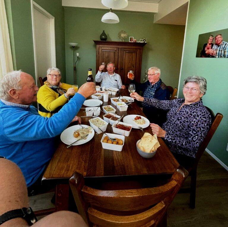 De gezellige dag voor Jan zag er niet veel anders uit dan dat de organisatie voornemens was toen Truus nog leefde. Happen en Trappen langs locaties in de buurt waar de mensen waar zij zich betrokken bij voelen zich hebben verzameld. Familie, vrienden, buren en de Jeu de Boules club.