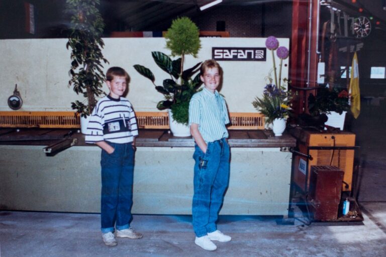 Met z’n drieën zijn ze de eigenaar van Doeschot B.V.: Frans (73), Roy (47) en Martijn (45). Van jongs af aan liepen de jongens al mee in de werkplaats. Roy is voor hij bij het bedrijf begon werkzaam geweest bij Reinders in Almelo. Eigenlijk zijn we zo’n beetje tussen de spanten geboren. Ook als kind waren we veel in de werkplaats te vinden, dus dat we iets in de metaal wilden gaan doen was al snel duidelijk.