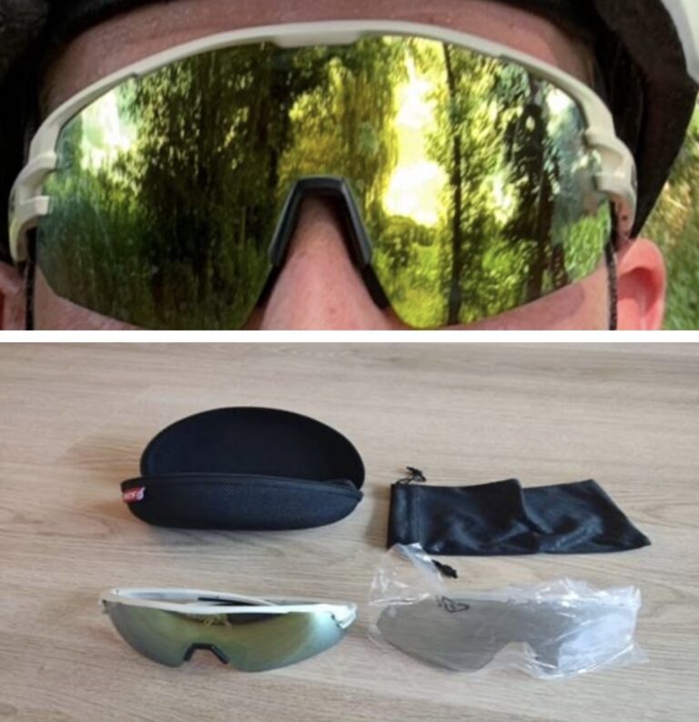 Het is onderstaande fietsbril en op de pootjes staat KLS (Kelly’s).”