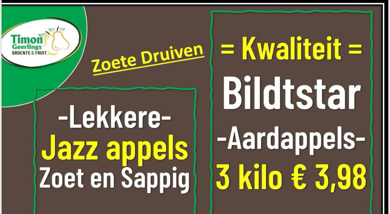 Onze Timon past zich aan, de winterkost gaat als een banaanMaar ook Bildtstar aardappels in de aanbieding, Bildtstar appels en zoete druivenBeste mensen; Komt morgen allen weer gezellig aanschuiven!