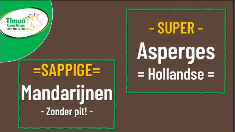 April doet wat hij wil, maar het is wel voorjaar! Onze Timon heeft asperges: Goed voor elkaar! Daarnaast in de aanbieding sappige mandarijnen zonder pit Een must voor iedereen: Waar wel pit in zit!