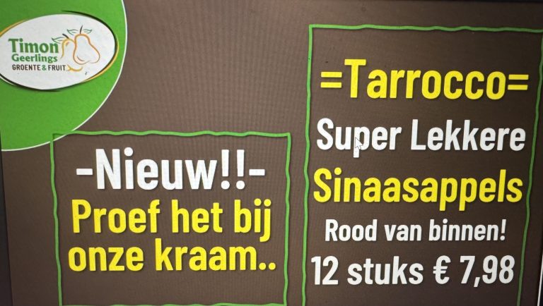 Nieuw bij Timon! Proef het bij de kraam! En wat is het allemaal goed voor je lichaam! Tarocco’s, super lekker en rood van binnen Ik zou maar snel aan de reis richting kerkplein beginnen!