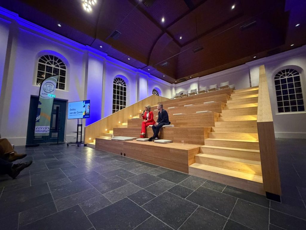 Het tweede deel van het programma vond plaats in de prachtige Martinuskerk in Markelo. De recent verbouwde kerk maakte veel indruk op de aanwezigen. Onder leiding van Bert Eeftink, vertelde hoofdspreker Debby van der Zande, bevlogen ambassadeur en onderneemster, haar persoonlijke verhaal. Ze vertelde over haar jeugd en haar weg naar het influencer- en ondernemerschap. Met haar nuchtere Twentse blik sprak zij open over keuzes maken vanuit het hart. “Vooral dicht bij jezelf blijven, dat maakt je krachtig. Dat is toch mooi?” Aldus één van de aanwezigen. De aanwezigen herkenden zich in haar verhaal en genoten van de bevlogenheid van Debby.