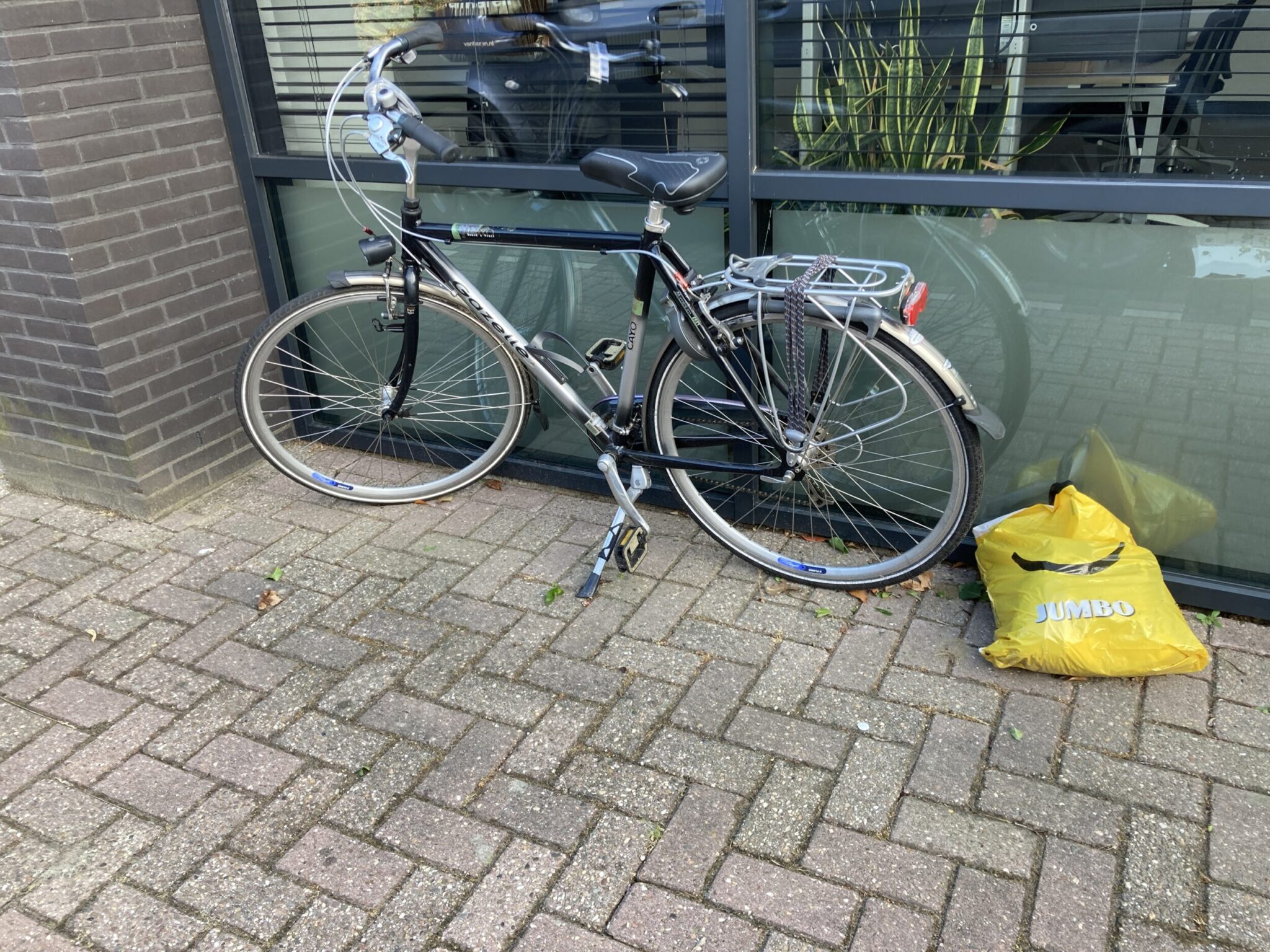 “Er staat al sinds het tweede weekend van de Zomerfeesten een fiets naast ons pand aan de Goorsestraat (tussen kantoor 2SA en Bazar van Jon). Verder lag er naast deze fiets een Jumbotas met daarin kledingstukken. Wij hebben geen idee wie de eigenaar is, dus we hopen via deze weg de rechtmatige eigenaar van de fiets te vinden.”