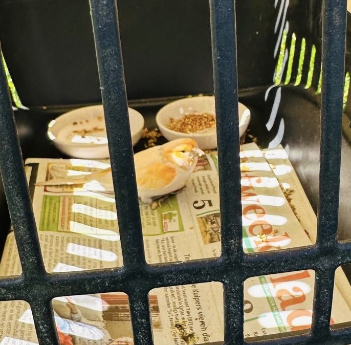 Mist iemand dit leuke vogeltje, is gisteren komen aanvliegen aan de Gorsveldweg. Is geringd. Herken je deze, bel 06-21580734