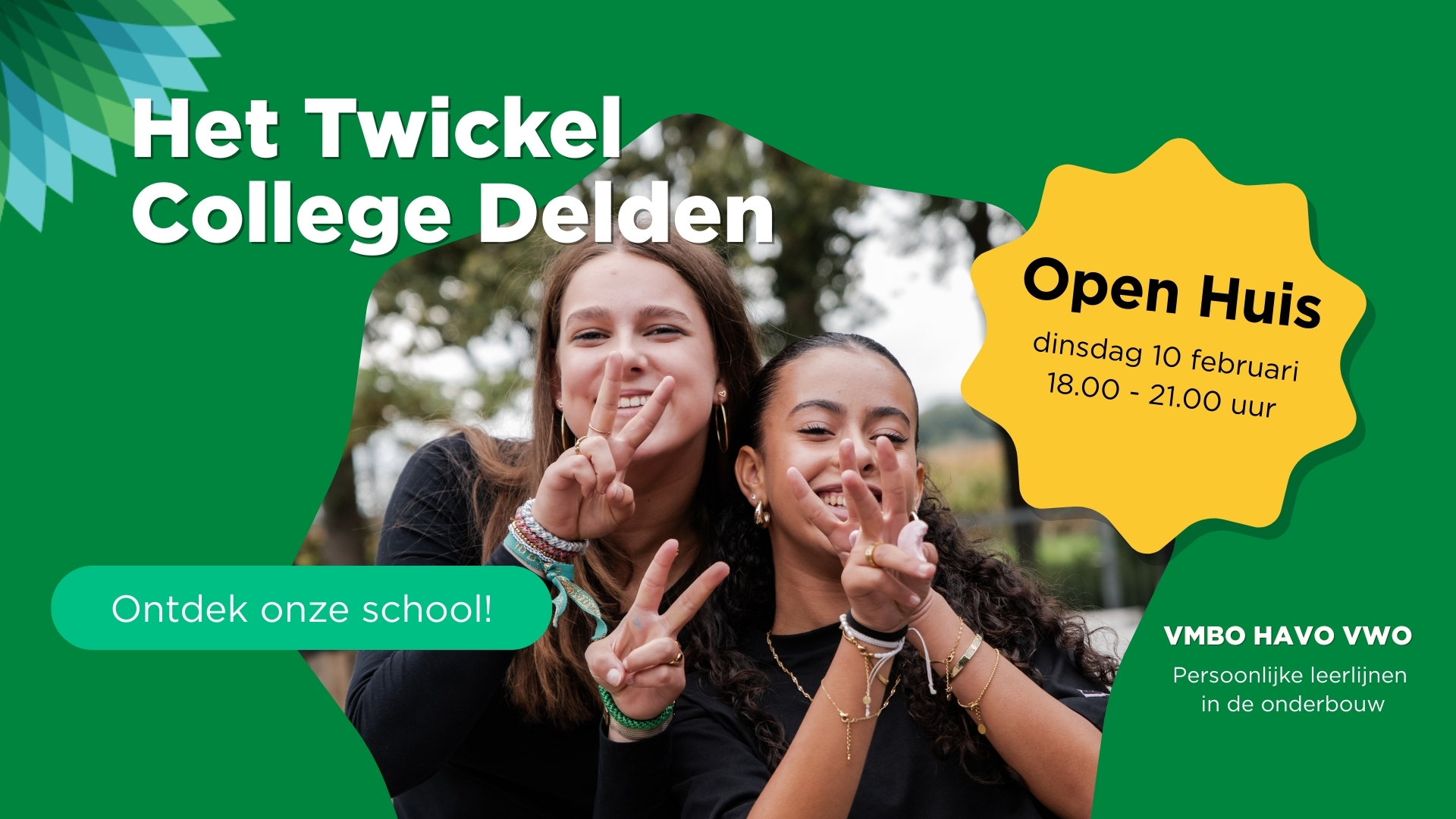 Ontdek Het Twickel College Delden: leren op jouw manier Het Twickel College Delden is een onderbouwschool voor vmbo, havo en vwo, met een gezellige sfeer en waar je je snel thuis voelt. Je krijgt de ruimte om te ontdekken wat jij leuk vindt en waar je talenten liggen. Want leren gaat het beste wanneer jij kunt zijn wie je bent en wanneer je zelf keuzes mag maken in hoe je leert. Daarom werk je bij ons op school met een persoonlijke leerlijn. Superhandig! Tijdens het Open Huis vertelt een leerlingpanel uit klas 1 hoe zij dit in de praktijk doen. Je kunt hen alles vragen!