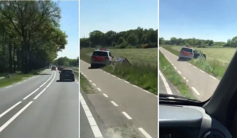 Auto in Beckum van weg geduwd door politie na wilde achtervolging (VIDEO)