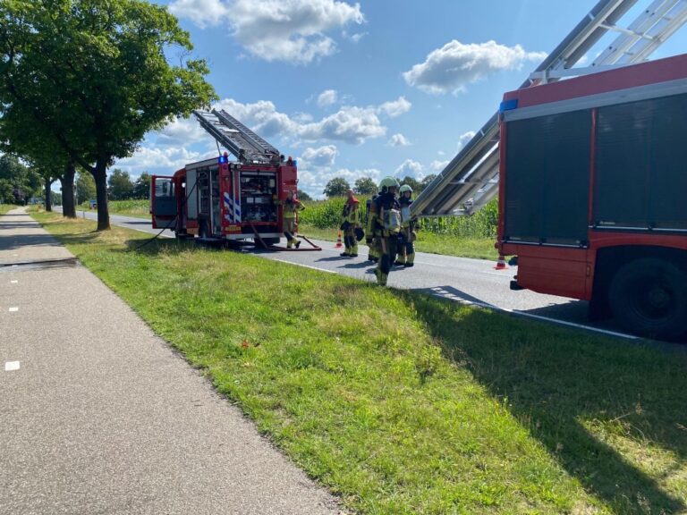 De brandweer is het aanliggende dak aan het controleren, er waren geen gewonden.