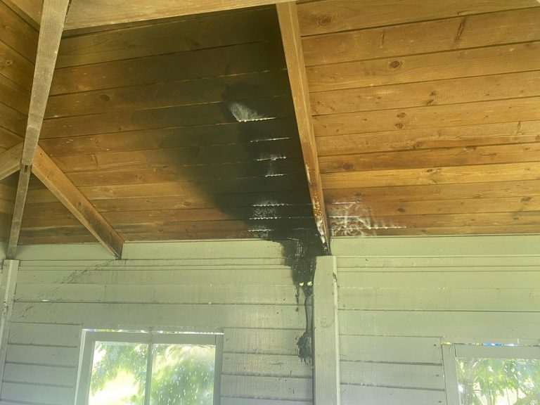 Update: De oorzaak bleek kortsluiting in een stopcontact in de jacuzziruimte te zijn. Hieronder een foto van de schade: