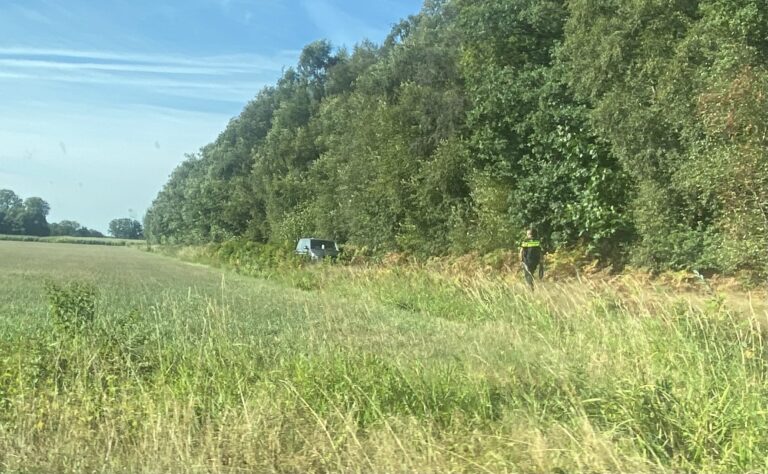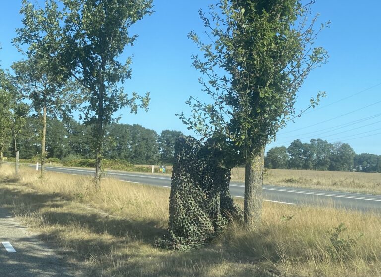 De flitsagenten worden steeds creatiever. Zo’n 500 meter buiten Hengevelde staat sinds 10.30 uur een ‘gecamoufleerde flitsinstallatie’. De agent heeft zijn auto verscholen in het nabij gelegen bos waar hij rustig kan gaan genieten van de draaiende airco.