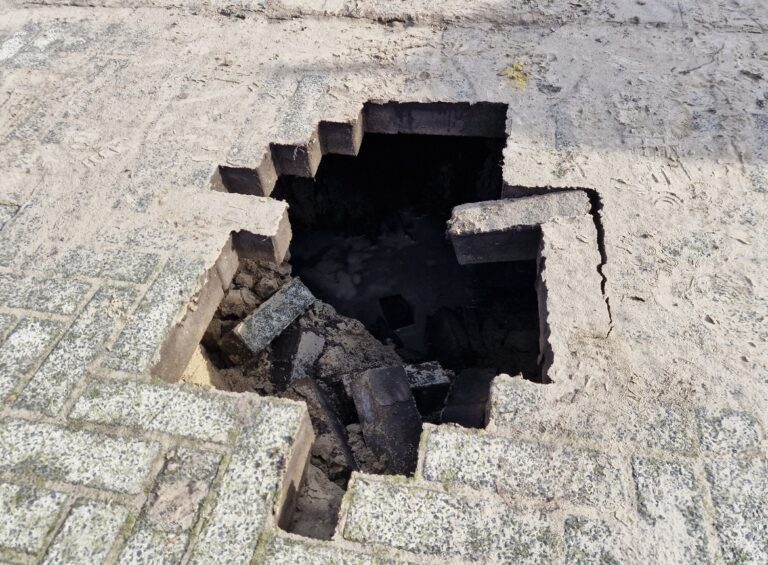 “Hierbij de mededeling dat er een gevaarlijke situatie ter plekke van de oversteekstoep aan de Diepenheimsestraag 42 richting straat is ontstaan. Het straatwerk bij de oprit is ingezakt. Tevens heb ik de bedenkingen over de stabiliteit van de naast staande boom. De boom staat midden boven de sinkhole.”