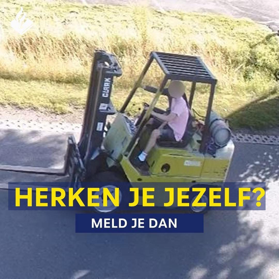 Op camerabeelden is te zien hoe de twee met de gestolen heftruck over de openbare weg rijden. De politie heeft een foto gedeeld waarop het gezicht van de jongeman voorlopig is geblurd. Dit om hem de kans te geven zich binnen een week te melden, zonder dat hij direct herkend wordt.