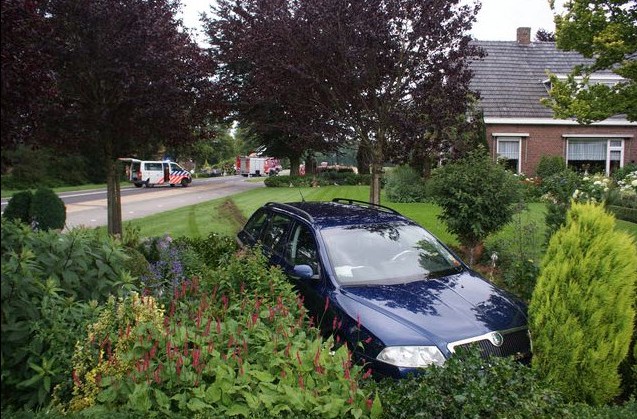 Een bestuurder die richting de camping reed kreeg op de weg waarschijnlijk een black-out en kwam daardoor op de andere weghelft terecht. Een automobiliste moest daardoor uitwijken en belandde met haar auto gedeeltelijk in een sloot. De bestuurder ‘gleed’ door en reed met zijn voertuig in een voortuin. De weg is uren afgesloten geweest. Naast de hulpdiensten was er ook een boer die hielp tijdens het incident. Hij spande een ketting tussen zijn tractor en de auto zodat het voertuig niet verder de sloot in zakte. De brandweer heeft de vrouw uit de auto gehaald en overgedragen aan het ambulancepersoneel. De man – die mogelijk een black-out heeft gehad – raakte niet gewond. De provincie Gelderland zorgde voor de afsluiting van de weg.