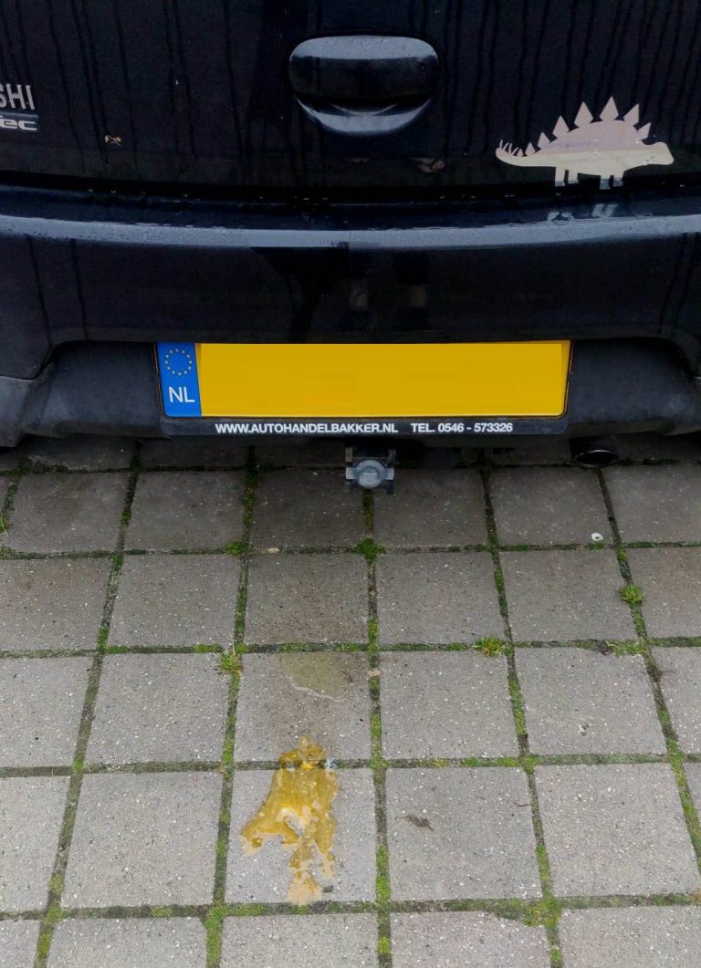 De bovenstaande melding kwam vandaag vanuit de Bomhof. Het zal je maar gebeuren. Stap je in de vroege ochtend in je auto om naar je werk te gaan, is je voertuig besmeurd met een onbekend, smerig uitziend goedje. Hieronder foto’s en de camerabeelden: