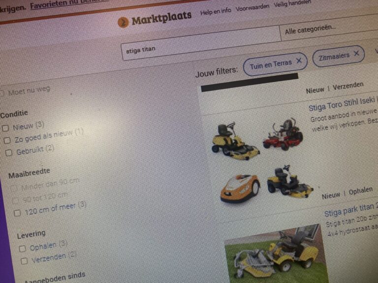 Een man uit Bentelo had op 30 maart jl. via Marktplaats in Noorwegen een grasmaaier gekocht van het merk Stiga Titan van 2009. De man heeft bij de aankoop een bedrag van € 3.500 overgemaakt maar tot op heden niets ontvangen. Hij kreeg wel een verzendbewijs toegestuurd maar deze was zonder track & trace link. Getuigen kunnen zich melden via het landelijke nummer 0900-8844. Liever anoniem blijven? Bel dan 0800-7000(Meld Misdaad Anoniem). Fraude kunt u melden bij de politie en ook bij www.fraudehelpdesk.nl of via het landelijke telefoonnummer 088-7867372.