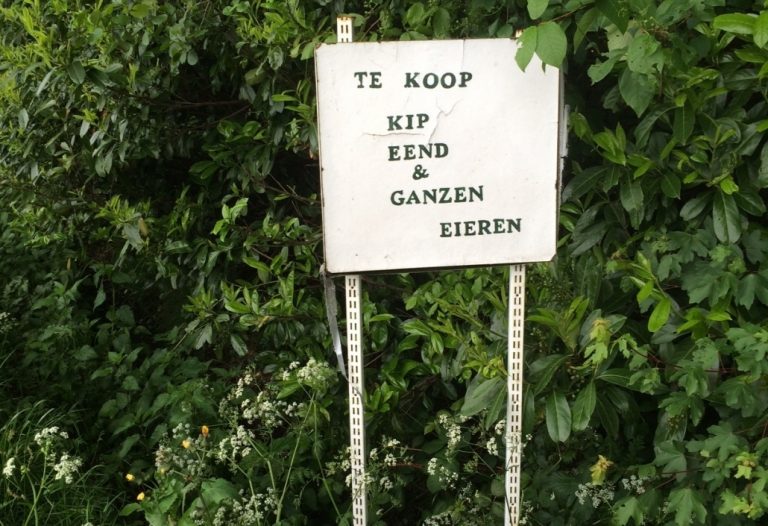 In Bentelo aan de Bentelerhaarweg, op de scheidslijn met Haaksbergen heeft iemand zijn hobby, namelijk kippen eenden en ganzen. Welnu, om de boel een beetje draaiende te houden, verkoopt hij middels een kist aan de weg, de kippen- en de eenden eieren. Tevens heeft hij ook af en toe wat kalkoenen eieren.