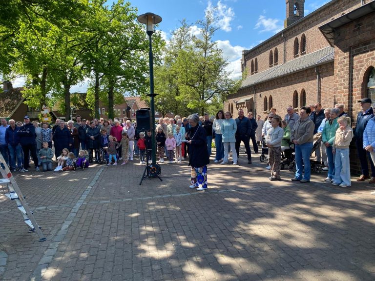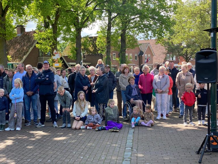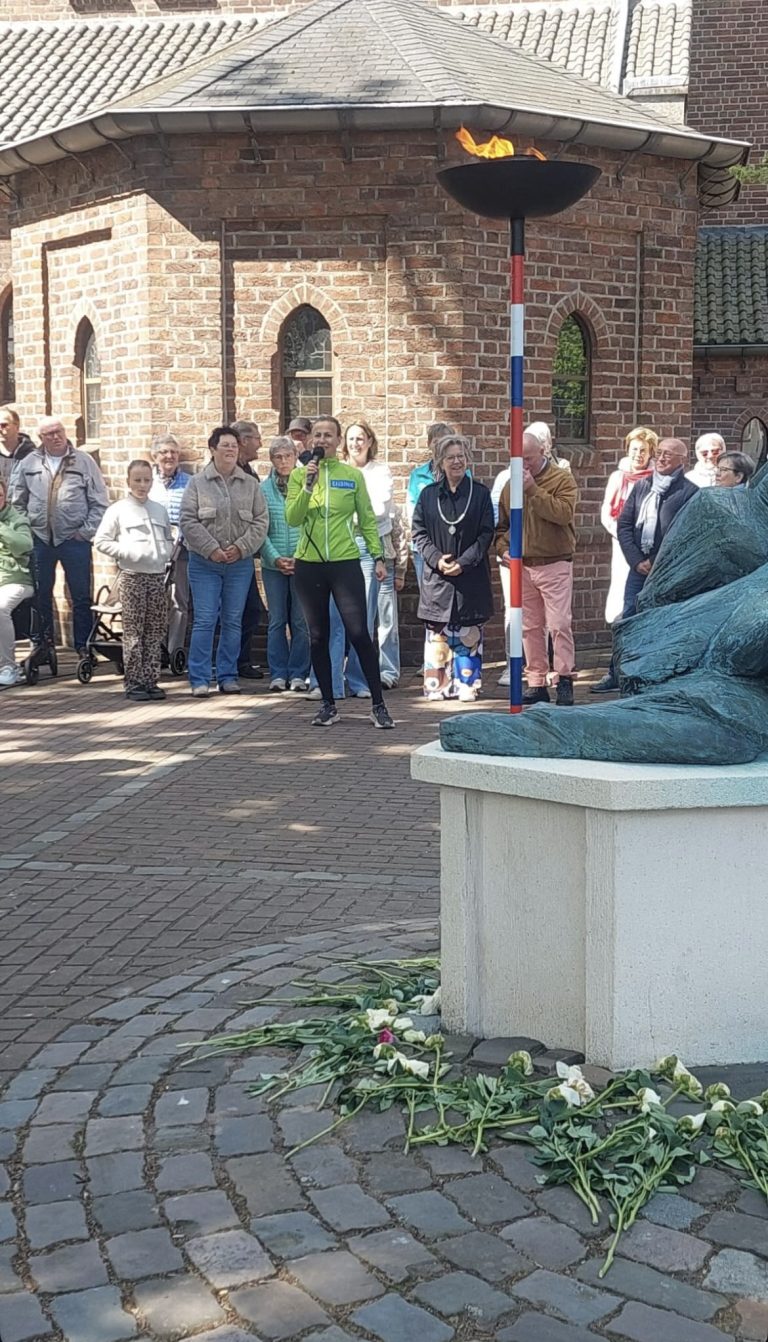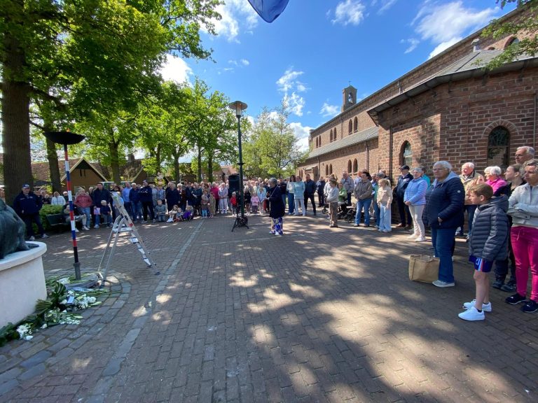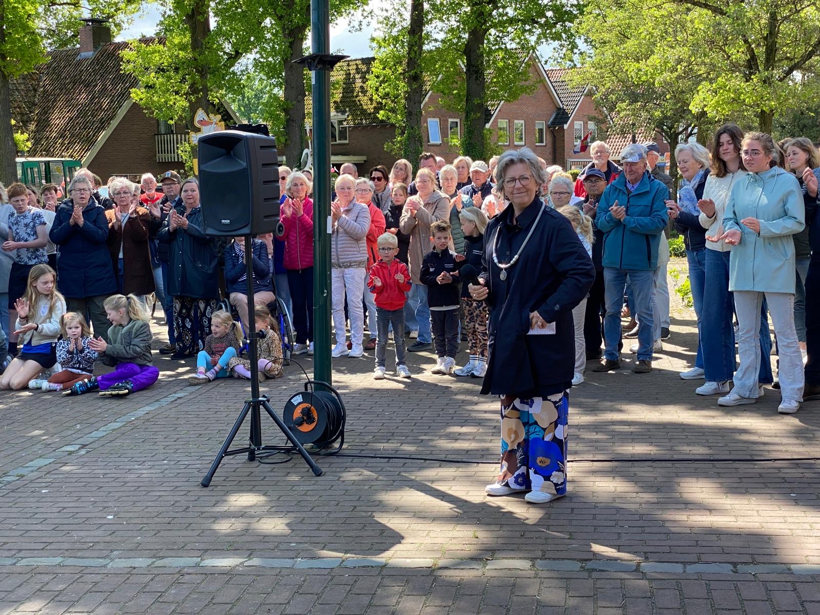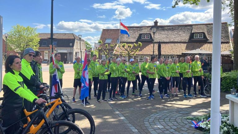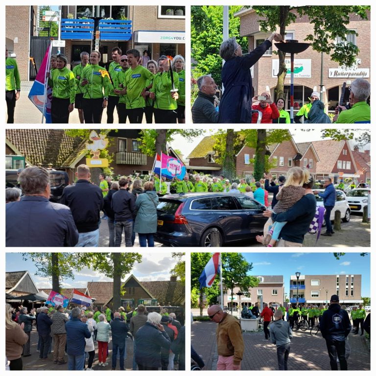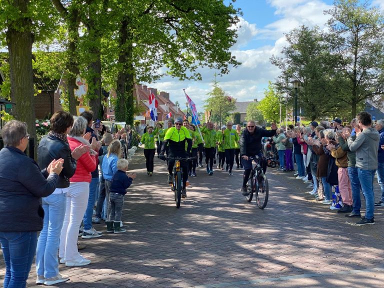 Daar stond een indrukwekkende erehaag te wachten van Hengeveldenaren die de lopers warm onthaalden. Burgemeester Nauta nam het Bevrijdingsvuur in ontvangst en sprak mooie, treffende woorden. Lieke bedankte vanuit de Loopgroep het publiek, met een speciaal woord van dank aan de fietsers: Carla, Peter en Rick ten Buuren en Norbert ten Vregelaar.