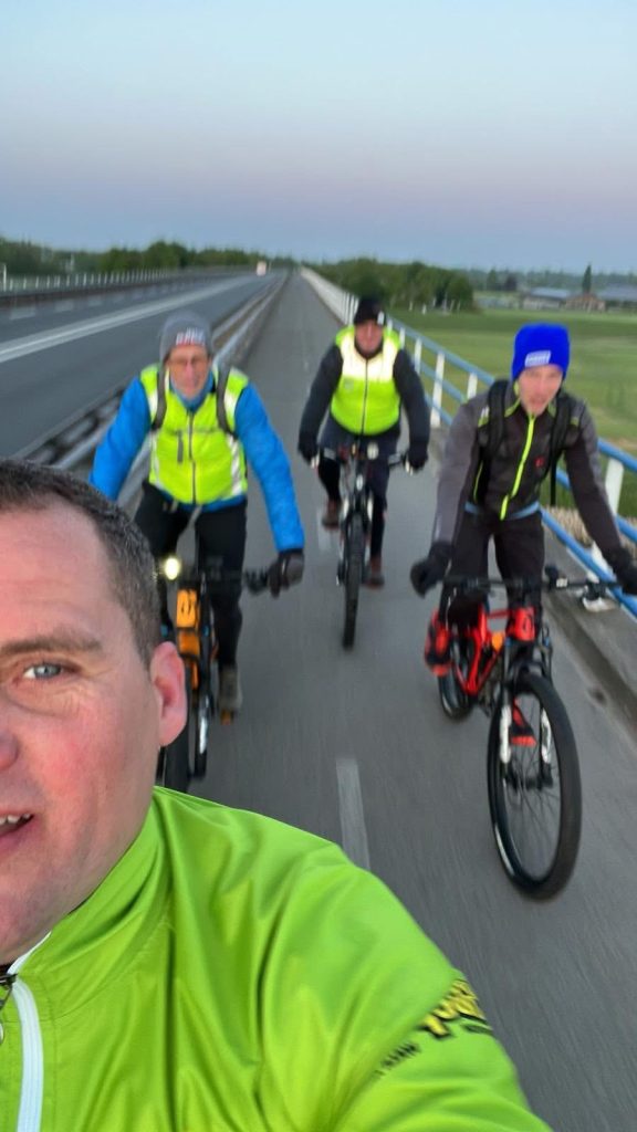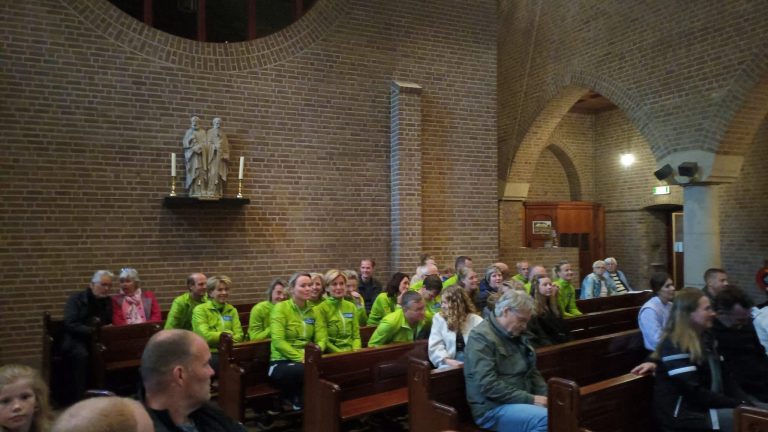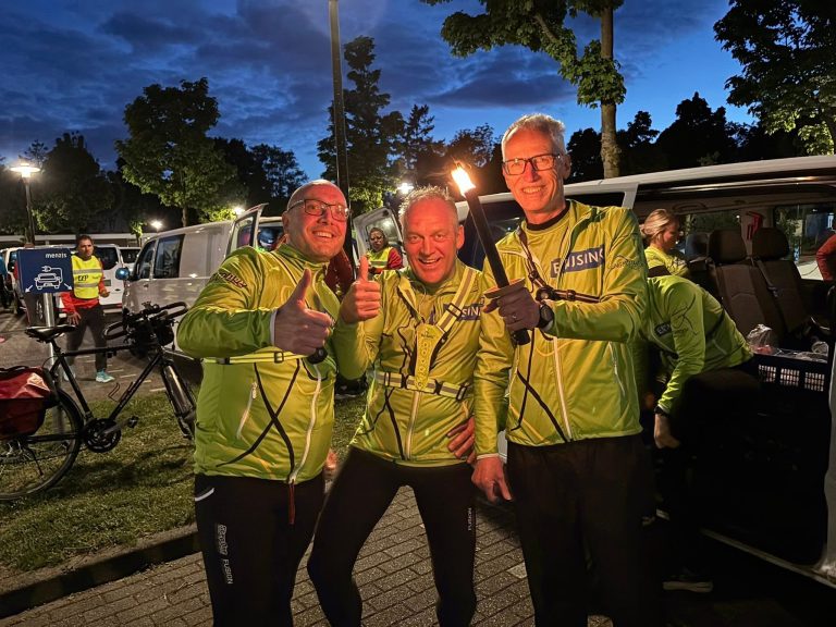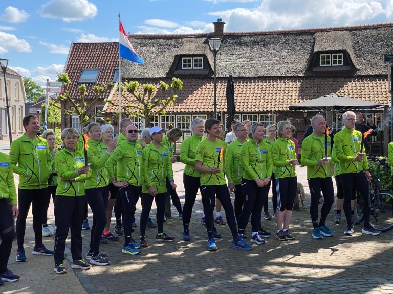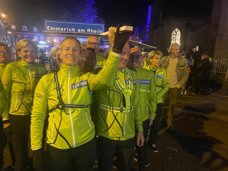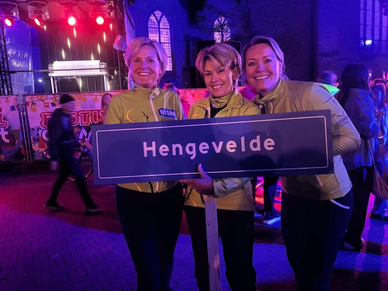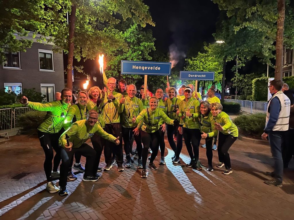 Wat volgde was een unieke nacht vol saamhorigheid en doorzettingsvermogen. Onder luid applaus van het aanwezige publiek vertrok de groep langs de route: Renkum, Doorwerth, Oosterbeek, Arnhem, Velp, Rheden, Dieren, Brummen, Zutphen, Almen, Lochem en Diepenheim – om uiteindelijk, bij het ochtendgloren, Hengevelde te bereiken. De route was met zorg uitgestippeld door Nardus, Carla en Peter ten Buuren, waarvoor hulde.