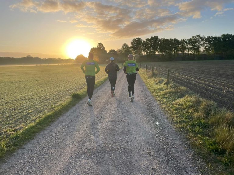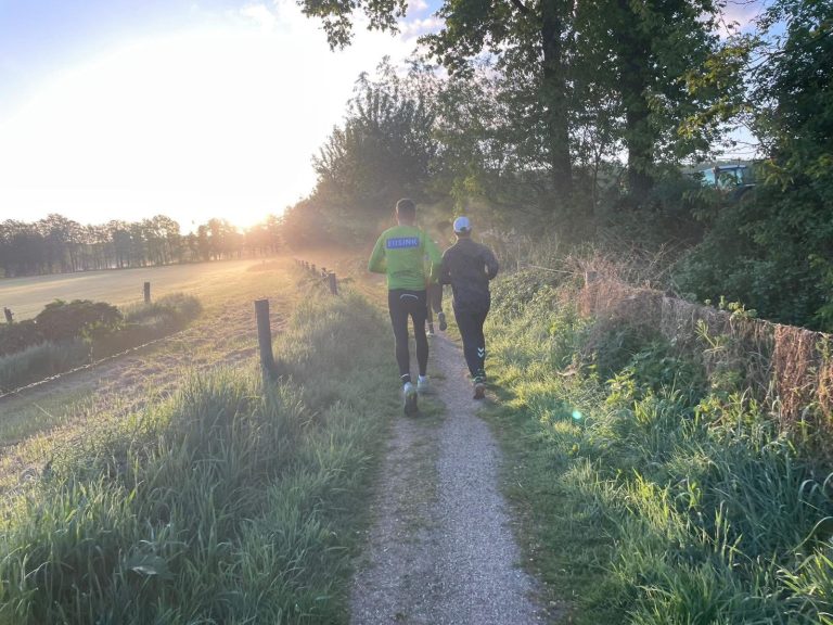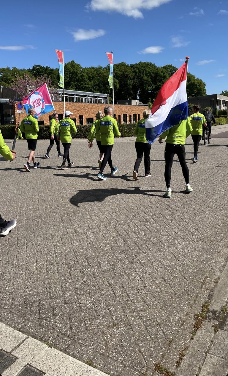Onderweg werden de lopers steeds begeleid door twee fietsers. De foto’s van de opkomende zon leverden prachtige beelden op. Een langere rustpauze werd gehouden bij Herberg de Pol in Diepenheim, waarna het laatste deel richting MHZ werd gelopen. Daar sloten ook de Powerwalkers aan. Met z’n allen werd de laatste kilometer afgelegd naar het monument.