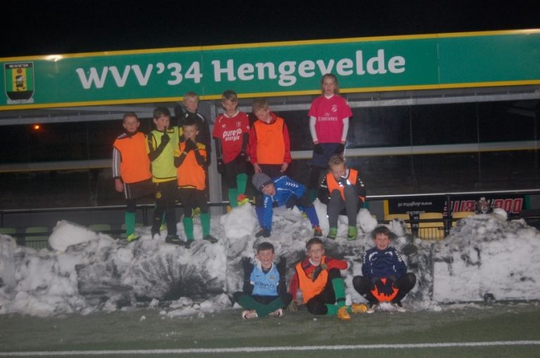 Woensdagavond 25 januari, -3 graden op de thermometer, ijspegels aan de neus en dus tijd voor de eerste training van WVV`34 JO13-2 in 2017 (D2). Om het kerst- en oliebollenvet eraf te trainen werd er bikkelhard getraind in de vorm van een heuse BootCamp, Sit-ups, Push-ups, JumpingJacks, Planken, lunchpass en een aantal kilometer gejogd over het veld, de inzet was top! Vervolgens nog een ballen veroverspel in rugbyvorm om de teamspirit te verhogen, al met al een succes volgens de spelers… Die schaal komt er wel..