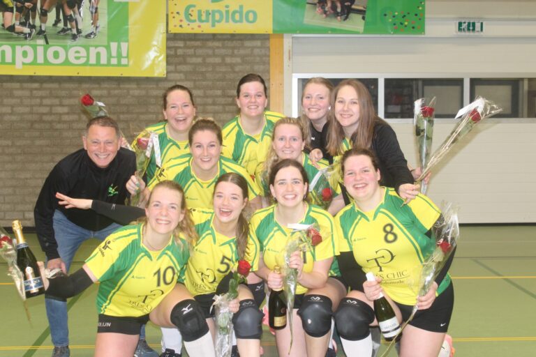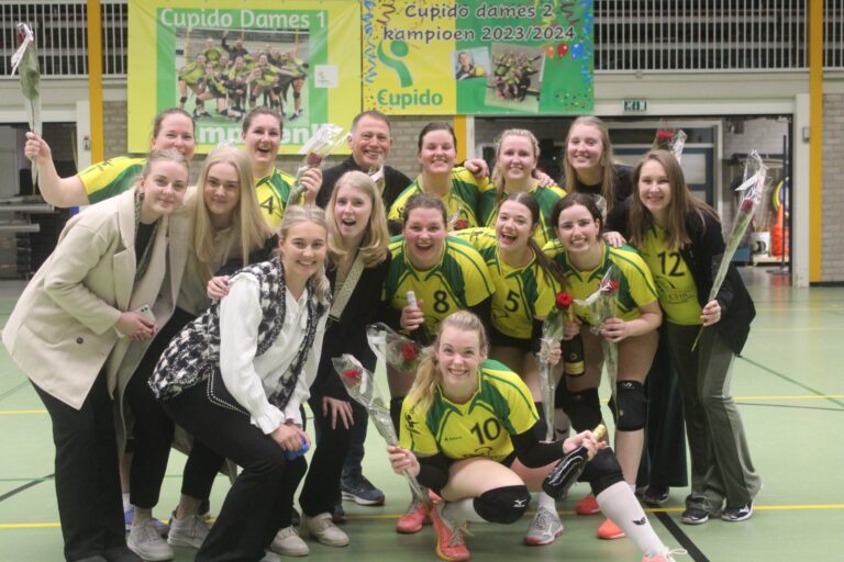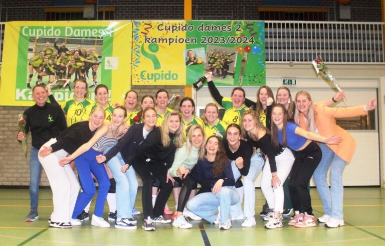 Dames 2 is kampioen geworden in de tweede klasse met 4 punten verschil van plek nummer 2. Volgend jaar gaan ze naar de eerste klasse en zien graag de vele supporters weer op de tribune volgend seizoen. Nog nooit heeft dames 2 van Cupido zo hoog gespeeld!!