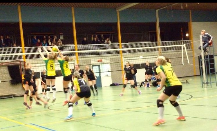 Met een denderende serve van Rowan Berg en Anouk Vehof werden vele punten behaald. De 2e set eindigde in een 25-20 voor de groen-gelen. Zittend in deze drive gingen de dames verder. Reddingen in de verdediging, druk achter de serve en een goede verdeling van het spel door spelverdeelster Emily Kuipers zorgden voor een daverend succes namelijk een uitslag van 25-15.