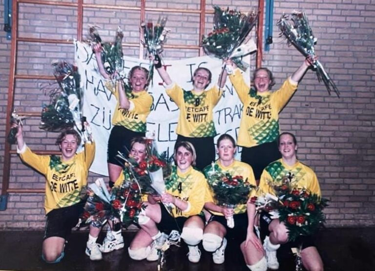 “Haha, ik sprak net Sheila, die had het er al over. We waren met een klein team, maar 8 spelers, nu echt ondenkbaar. Met Karen Eshuis als jongste, Anja Hartgerink volgens mij als oudste en Adrie Holkes als trainer.