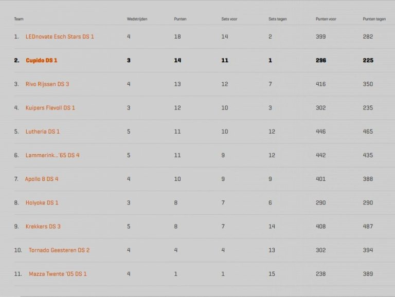 Cupido dames 1 doet daardoor mee om bovenste plekken, zie de stand hieronder.