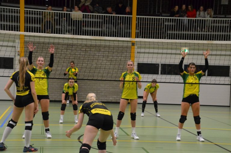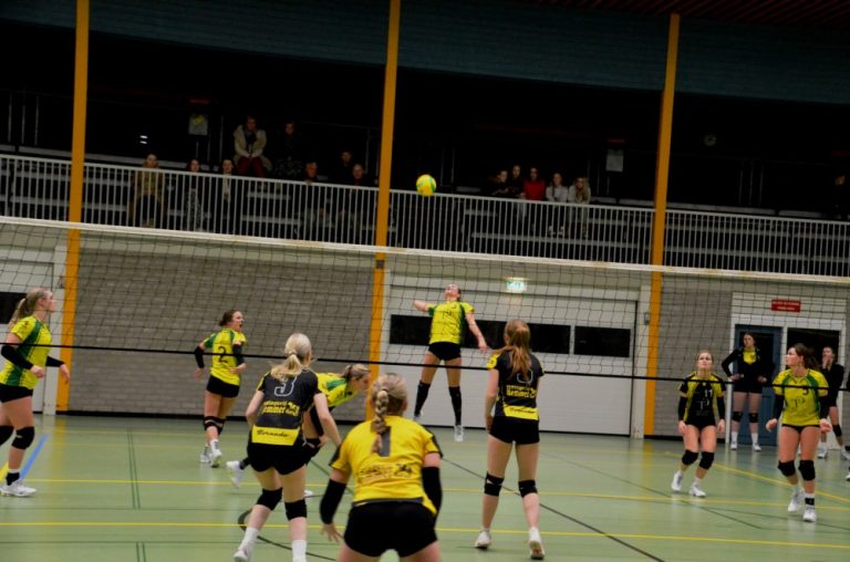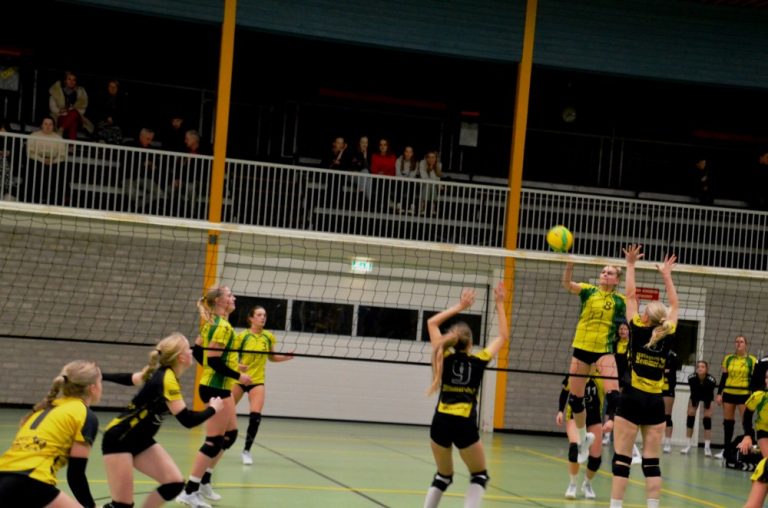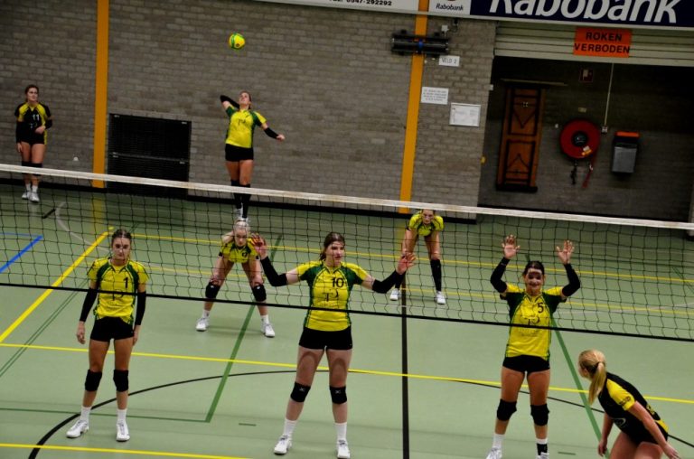 De 4e set begonnen de groen gelen met een achterstand. Door eigen spel te spelen en een goede organisatie neer te zetten kwamen de dames weer bij en speelden de set uit met een eindstand van 25-16.