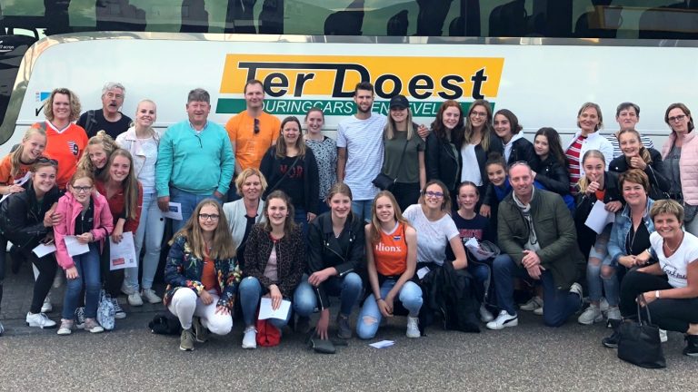 Voorzitter Veronique Beuving: “Gisteren om 16.45 uur verzamelden we bij kulturhus de Marke voor gezamenlijk friet met een snack (bedankt Yess!), waarna we om 17.45 in de grote touringcar bus van ter Doest (bedankt Ter Doest!) naar Apeldoorn zijn vertrokken. In het sfeervolle Omnisport met 4000 toeschouwers hadden we een mooie plek dicht op het veld en keken we naar prachtig volleybal en een uiteindelijke 3-1 overwinning tegen de nationale volleybalploeg van Bulgarije.Keiharde aanvallen van de topscoorsters van de wedstrijd Marrit Jasper en Nicole Oude Luttikhuis en de afwisselende spelverdeling van Laura Dijkema waren super om te zien! Een hele knappe overwinning voor de jonge ploeg met een gemiddelde leeftijd van nog maar 22 jaar en een gemiddelde lengte van 1.84m!