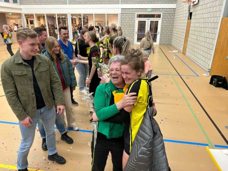 Ook Remco Beuving, de vader van 4 speelsters werd gefeliciteerd en zijn reactie op de opmerking: “Zonder jou waren ze het niet geworden antwoordde hij: