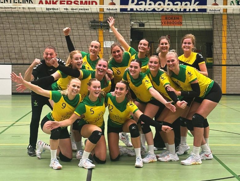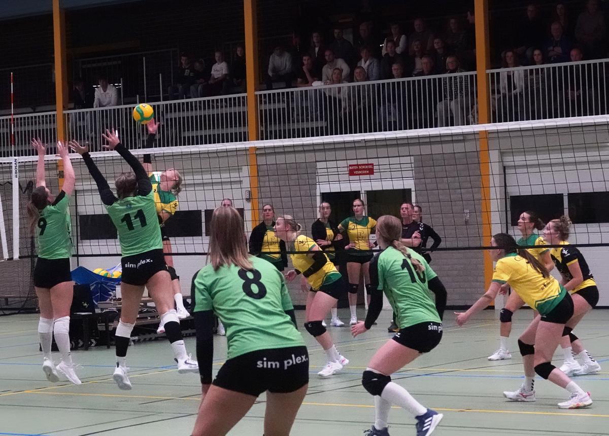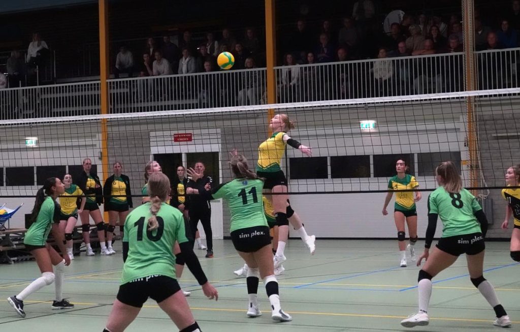 Niets daarvan! Na een sterke opslagserie van Rowan Berg draaiden de dames het tij en stond het 13-11. Een vliegende Mila en een felle Femke Beuving lieten zich meerdere keren gelden, aangemoedigd door trainer Alfred Oonk.