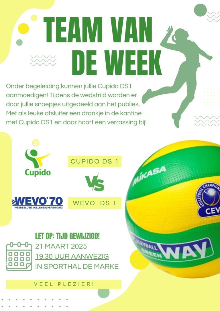 Vrijdagavond 21 maart staat er opnieuw een thuiswedstrijd op het programma. Dit keer is Wevo D1 de tegenstander. Eerder dit seizoen wist Cupido in Weerselo al twee keer te zegevieren, zowel in de competitie als in de beker, met een overtuigende 1-3 overwinning.