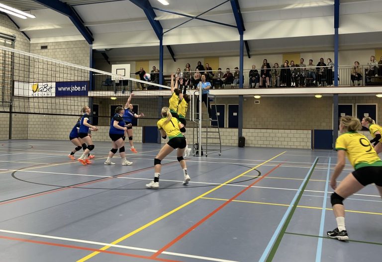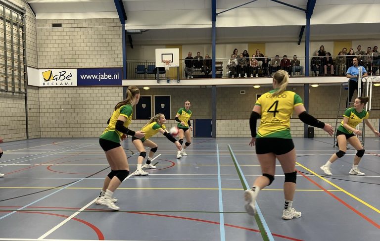De eerste set begon sterk met drie opeenvolgende blocks, waarmee het team direct een voorsprong nam. Anouk Beuving bewees zich als een uitstekende invaller op de middenpositie. Ook had Mila Broshuis een paar knallers ertussen zitten. Daarnaast zorgde een sterke servicereeks voor extra druk op de tegenstander. Dankzij dit solide teamspel werd de set overtuigend gewonnen met 17-25.