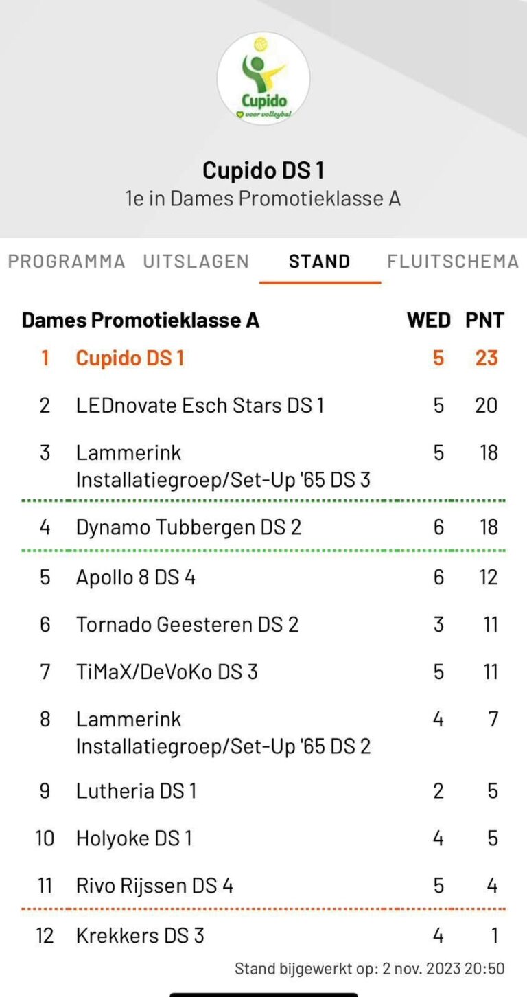 De dames van Cupido 1 heeft vanavond in Ootmarsum met 3-1 gewonnen, het liet zich verrassen in de eerste set en daarna was het klaar (25-22 / 30-32 / 14-24 / 21-25)