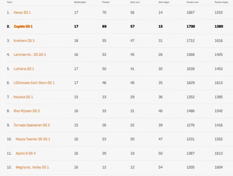 De trommels zwegen inmiddels, het was vechtmachine Cupido dat bepaalde met mooie duels en veel beweging tussen de lijnen. In no time stond de 5-1 op het scorebord. Ging de smash links door een Beuving in het blok, dan maakte een andere Beuving het op rechts wel af. Via 10-5 en 17-10 werd de 4-0 overwinning uiteindelijk bekroond met een 25- overwinning in set 4.
