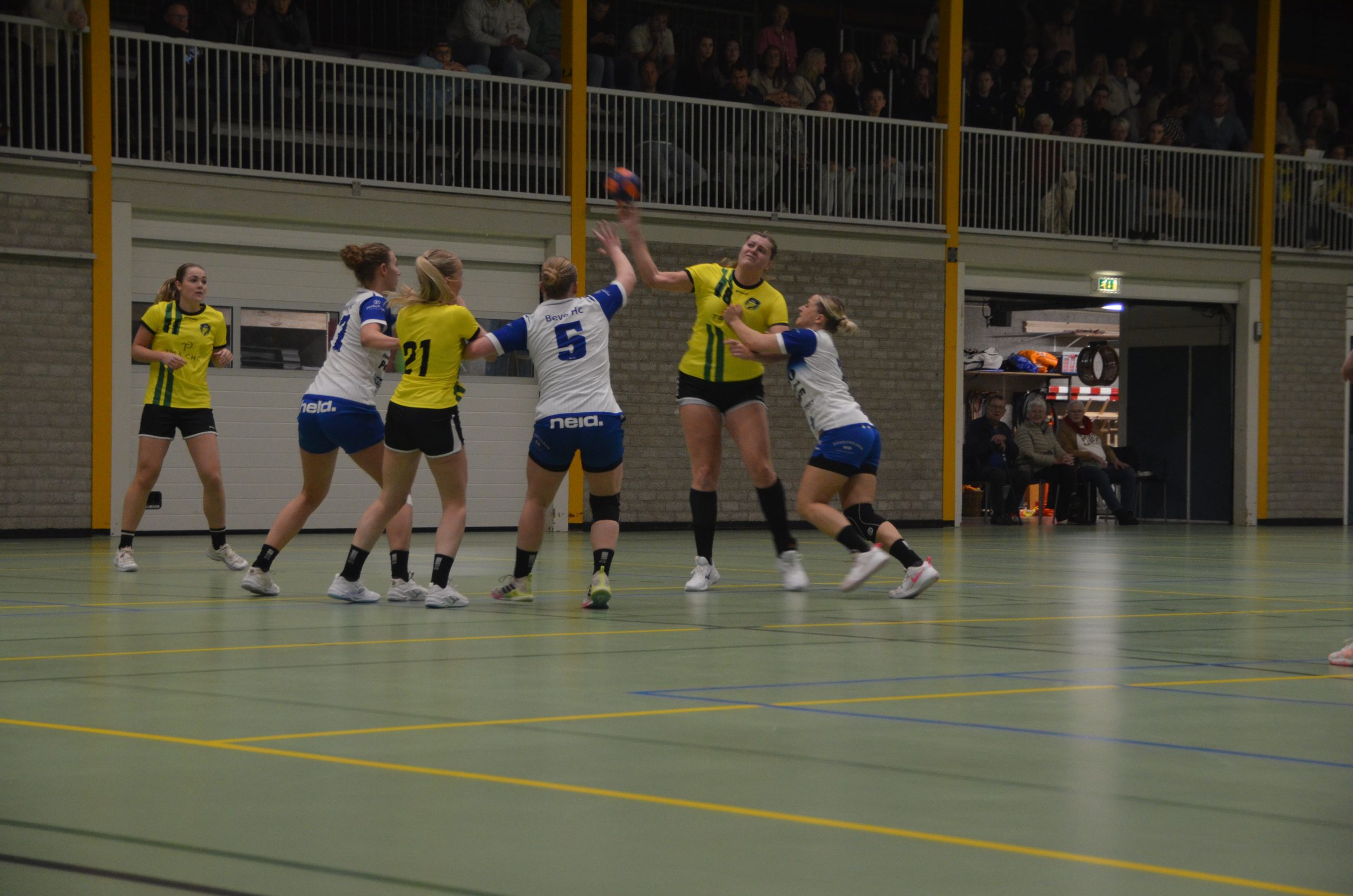 Daarna gebeurde er van alles. Beide teams kregen een tijdstraf van twee minuten, WHC benutte een strafworp terwijl het met een speelster minder stond, en een bal vanaf eigen helft belandde op de lat omdat de keeper was gewisseld voor een veldspeelster. In die hectische fase liep WHC, met nog twaalf minuten op de klok, uit naar 19-13.
