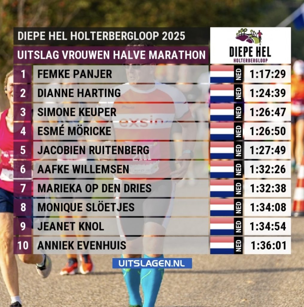 Een geweldige prestatie van Simone Keuper tijdens de Halve Marathon van de Diepe Hel Holterbergloop! De loopster van Loopgroep Hengevelde eindigde als derde dame overall en pakte bovendien de eerste plaats in de categorie dames 40+.