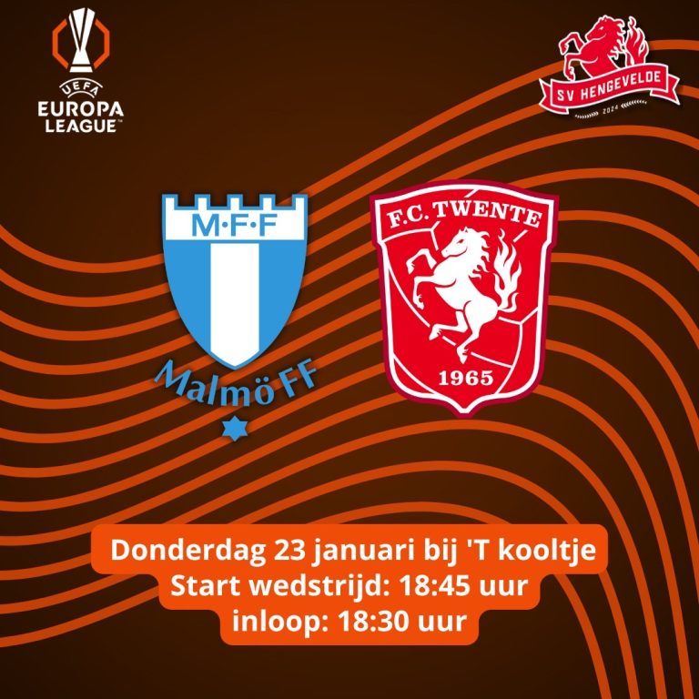 Donderdag 23 januari wordt een prachtige voetbalavond in Hengevelde! Kom samen met ons de spannende wedstrijd Malmö FF – FC Twente beleven bij ’t Kooltje.