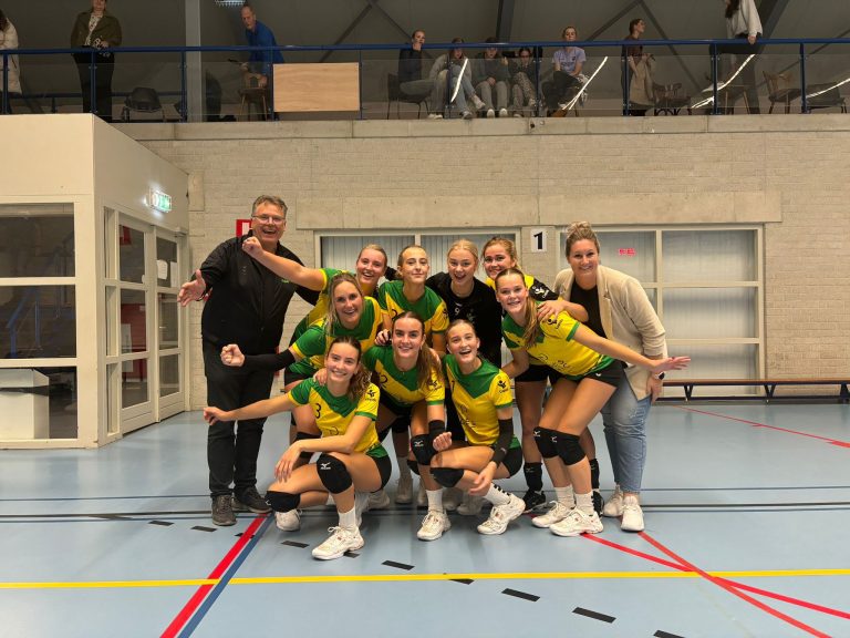Wederom ging set 3 gelijk op, de groen gelen bleven druk zetten en met nog een goede invalbeurt van Mila Broshuis kon ook set 3 bij worden geteld: 21-25