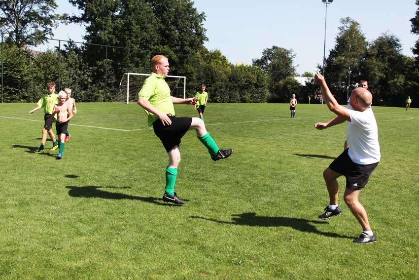 Dat wil zeggen, de jeugd vermaakte zich tussendoor uitstekend met de sproeiers op veld 3. En zo werd het gisteren ondanks de waarschijnlijk heetste dag van het jaar toch nog erg gezellig op Rupertserve. De diehards op het veld hadden weinig last van de warmte. In de “hitte” van de strijd waren de deelnemers, jong en oud, voornamelijk op de bal gefixeerd.