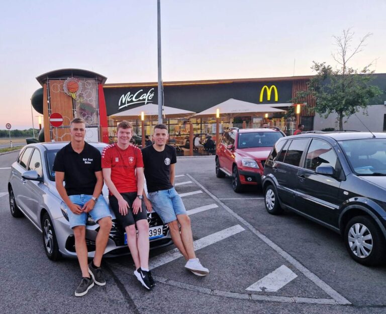 “Afgelopen maandag zijn we naar Mallorca afgereisd met de kameraden. Dit stond al vast voordat de loting bekend was. Toen de datum bekend werd (helaas tussentijds ook nog gewijzigd) gingen we kijken wat de opties waren om naar Belgrado te gaan. Vliegtickets waren behoorlijk duur, dus was de oplossing voor een relatief goedkope prijs om te vliegen op Wenen en vanuit daar een auto te huren en de laatste 600 km naar Belgrado te overbruggen met de auto samen met mijn neef Ramon Voortman en kameraad Koen Grefte.