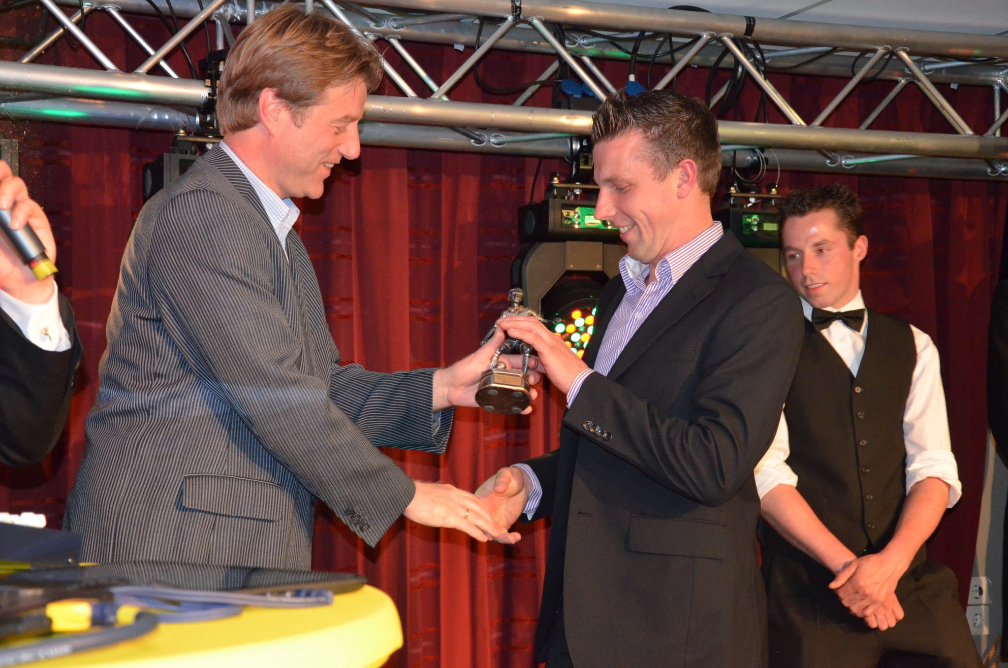 Keeper Wouter Assink ontvangt uit handen van Jeroen Kiepman de prijs voor voetballer van het jaar (1e elftal).