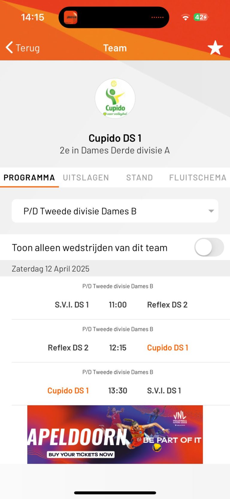 Cupido Dames 1 speelt de volgende wedstrijden: